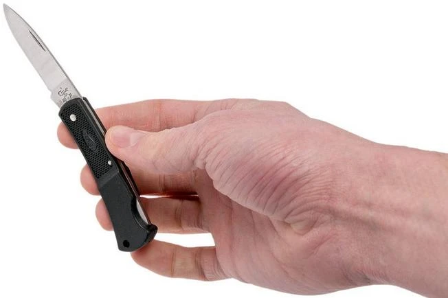 The Case Black Case Caliber is a small and light-weight pocket knife. You won’t scare anyone with it. The blade is only 5.6 cm long, but great for opening boxes and other day-to-day tasks. The handle very slim, as such the knife almost disappears inside your pocket.