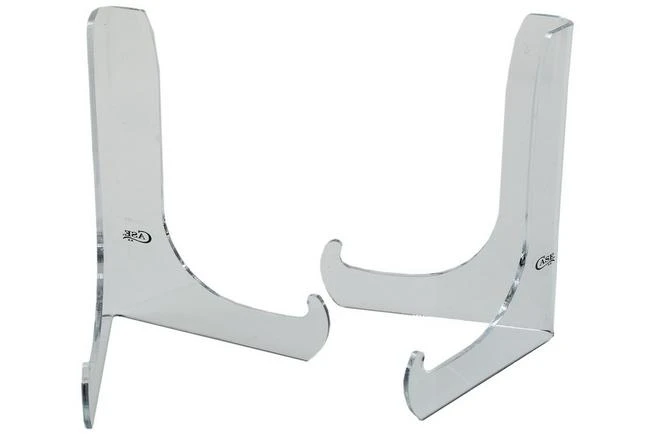 The Case Knives Acrylic Knife Stand X-Large 09062 2x is a set of two knife stands for very large knives. Think, for instance, of the Large Folding Hunter. The shape of the stands might look a little funny at first. Case, however, designed the stands as such that you can also put a half open knife on top, to properly look at all the blades. Because they are transparent, light will nicely pass through them in a display case onto the underlying shelves. Clever! These case knife stands are a must-have for every Case enthusiast.