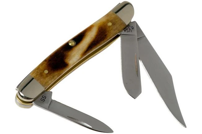 The Case Medium Stockman is a true classic in the pocket knife world. This pattern is almost as old as the entire category of Traditionals. This Case Stockman is a very pure incarnation of this classic model. It is enhanced with three blades: a clippoint blade as a main blade, a pen blade and, of course, the almost indispensable Spey blade. This is a spearpoint with a sort of blunt tip. Originally this type of shape was used to gut game.
