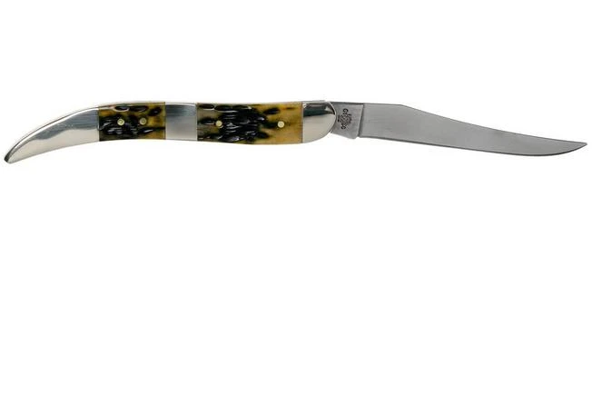 The Case Texas Toothpick is a stylish pocket knife. The handle is slim and wavy, just like the blade that comes out of it. An amazing pocket knife with a pointed clippoint blade. Great for lighter tasks such as peeling an apple or opening a box.