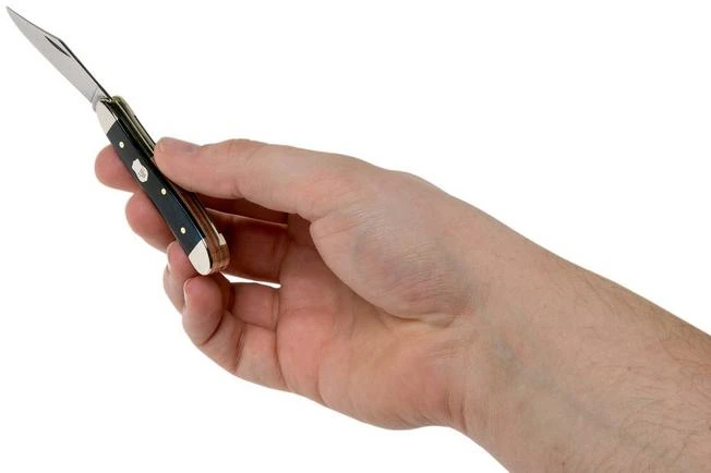 The Case Mini Trapper is a traditional pocket knife with a classic Trapper shape. This is a pattern that has its origins amongst hunters and poachers. This specific version has two blades: a classic clippoint and a traditional speypoint. Both blades can be used to gut caught game. When opened they are kept in place by a slipjoint. It is also enhanced with a so-called half-stop. This means that it will stop half-way through closing to make sure you can get your fingers out of the way.