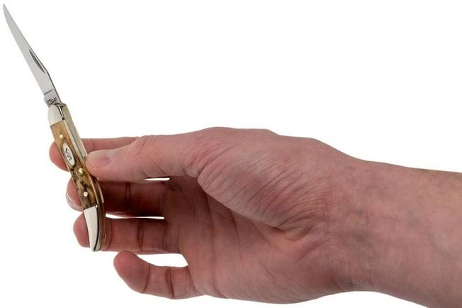 The Case Small Texas Toothpick is a small and charming pocket knife. The handle is slim and wavy, just like the blade that comes out of it. An amazing, small pocket knife. Great as an addition to your EDC rotation, or for in a ladies handbag. A fun little knife for smaller tasks such as peeling an apple or opening a box.