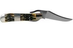 Case Russlock, Tang Stamp Series, Peach Seed Jig, Olive Green Bone 21517, 61953L SS Pocket Knife